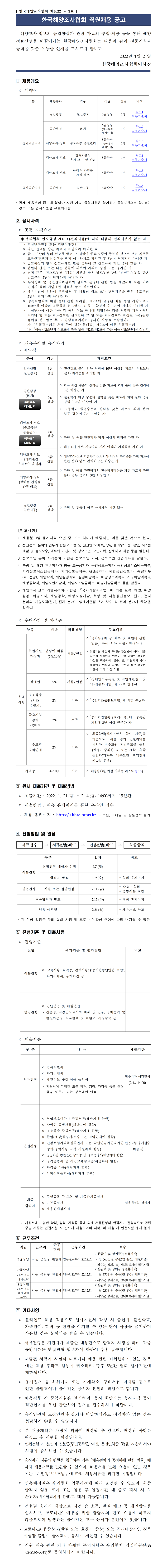 한국해양조사협회 2022년도 제1차 직원채용 공고